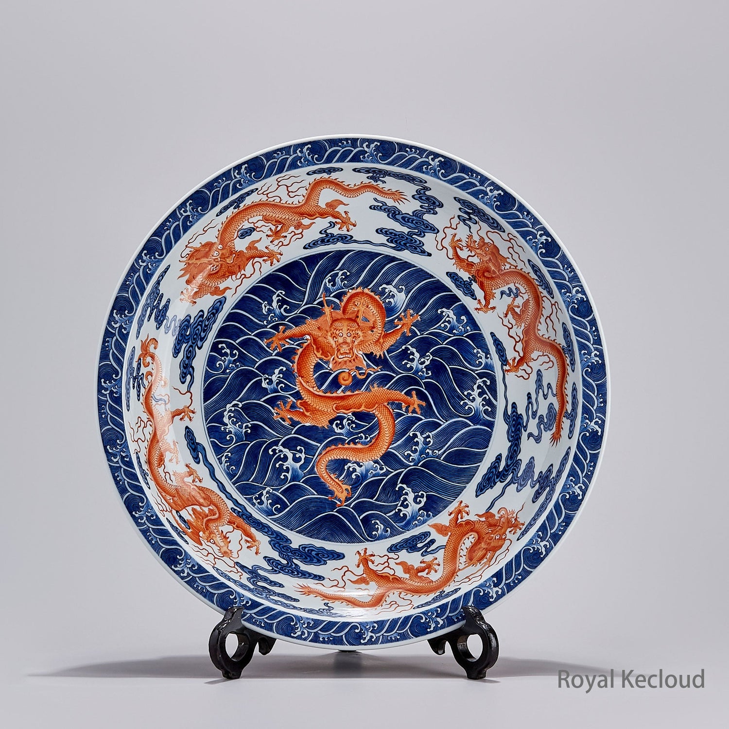 Royal Porcelain Vase | Qing Dynasty Qianlong | Blue and White Iron-Red ‘Dragons amid Waves’Regular price $11,880.00 USDRegular priceUnit price per-